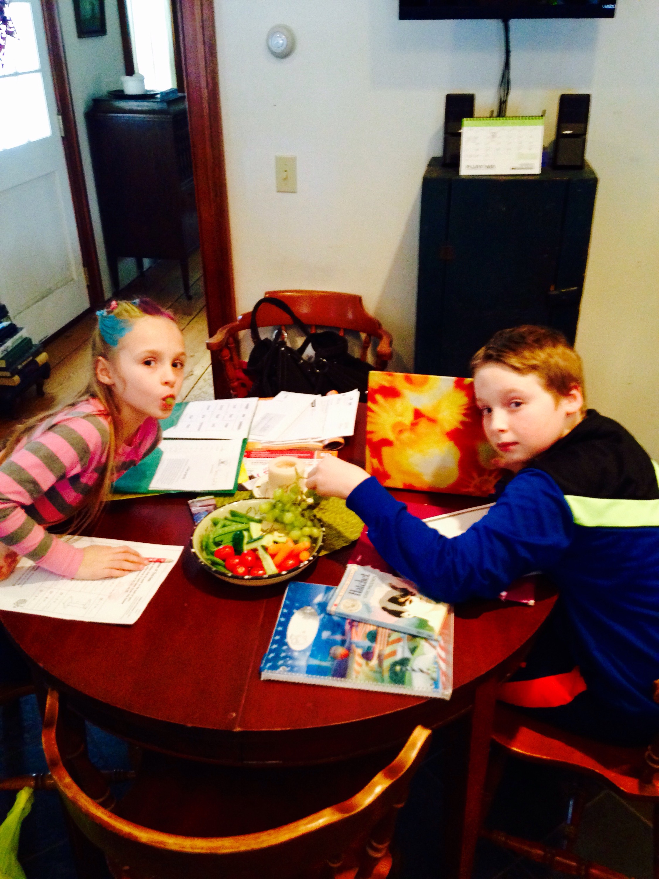 Feature picture is of my children taking a homework break today. Below photo taken of my daughter Ava on this Wacky Wed in rememberance of the talented Dr. Seuss: