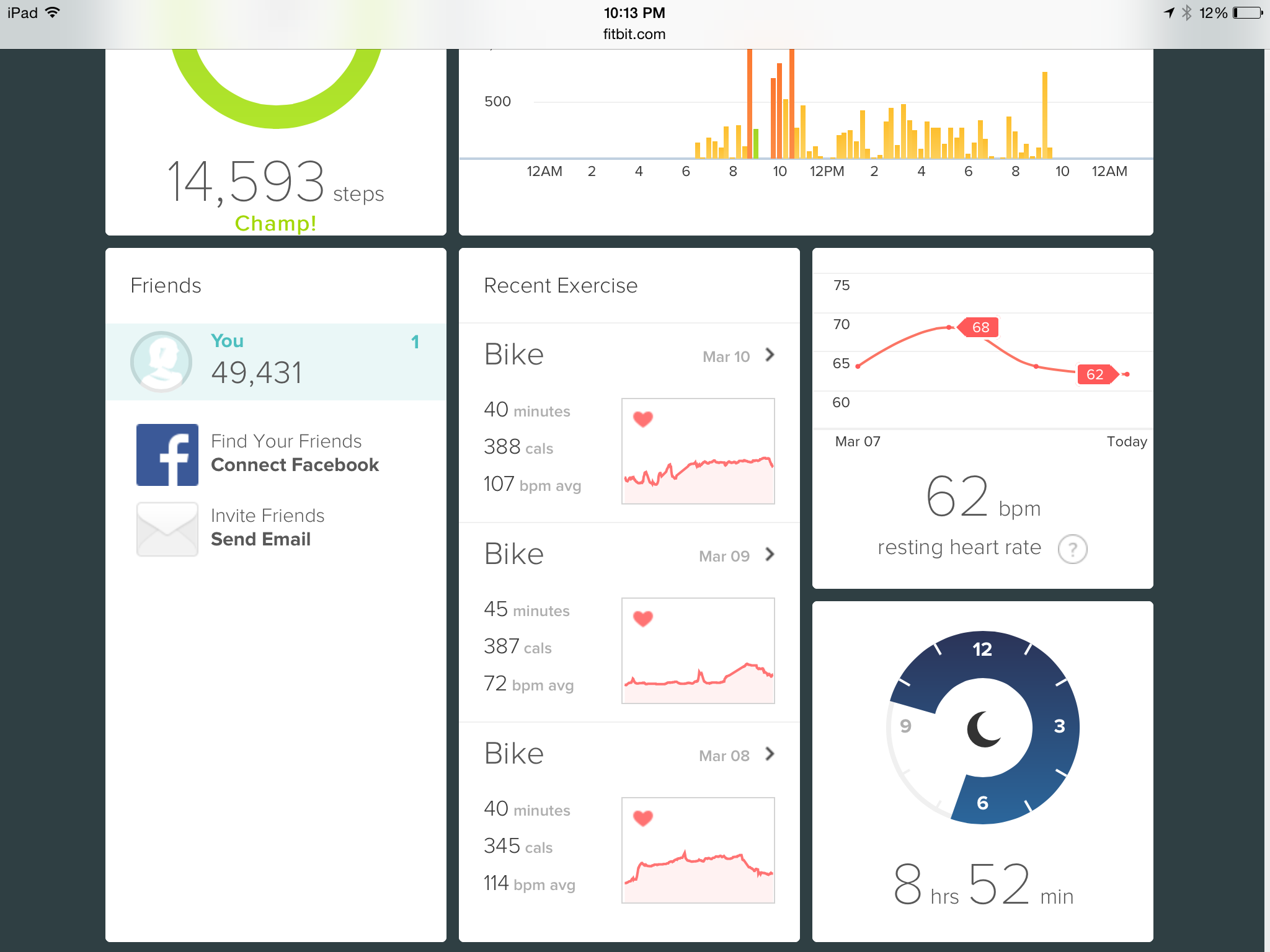 40 minutes of spinning today. Feeling great and all of this energy and activity is leading to more down time. I logged 8 full hours of quality sleep last night. This has not happened since B.C. (Before children) and they are 7 and 11 years old now!