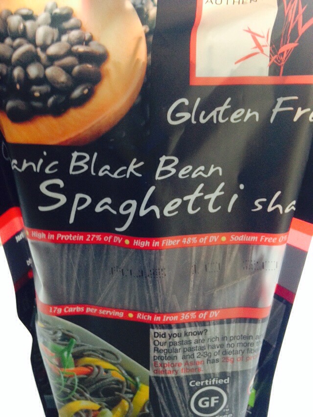 enjoyed over black bean pasta topped with crushed tomatoes. The black bean spaghetti was awesome, I found it in the Thai section in Shoprite: