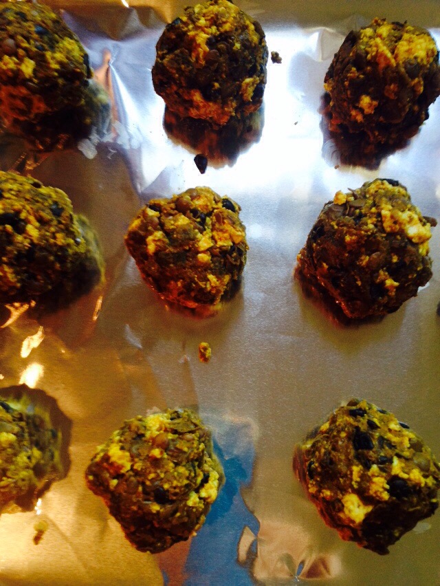 Decided to make black bean, lentil, tofu, mushroom, beat, onion, chia seed, garlic meatballs:
