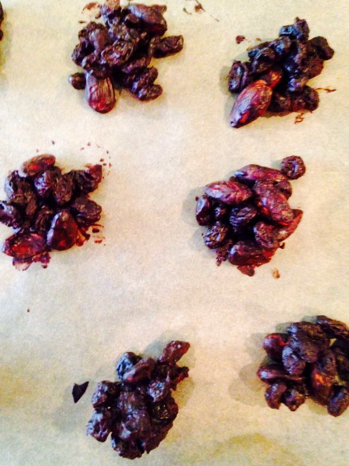 It was a 1/2 day at school today (which I only realized when the bus showed up early 😳). We made chocolate covered raisan and almond clusters using 1/2 of an 88% cocoa bar. We also dipped clementine slices: